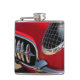 The distinctive grill and head lights of a shiny 1954 Chevrolet Corvette. All red and shiny in the summer sun ready for a fun drive in the country or along beach.