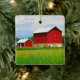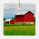 think spring! beautiful red barns with green field in front. colours were brightened.