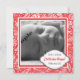 A very sweet red and white framed photo design that works well with large newborn baby photos that highlight your sweet baby's face. This design features a bright, vivid red and white country western themed paisley patterned background, with white and matching red square frames that draw attention to the most important part of the page - your son, daughter, grandson, or granddaughter, nephew or niece, or other special family member! Perfect for the frugal new parents or their friends to throw a combination baby shower and welcome new baby type gathering, so you can announce the birth and invite guests with one single invitation. It has several easy to customise text areas on the reverse side for party details, as well as rsvp contact information. Click the handy customise button to resize/reposition your photo if necessary and ensure that it covers the entire photo area.