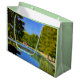 Red Covered Bridge on Serene Lake in Yellow Blue Large Gift Bag