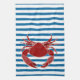 Red Crab Blue and White Stripe Kitchen Towel