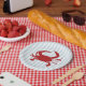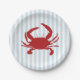 Red Crab Painting Nautical Stripe Paper Plates