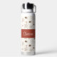Red Cream Boho Watercolor Woodland Custom Name Water Bottle