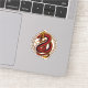 A powerful Chinese dragon, rendered in vibrant shades of red and gold, coils within a circular frame adorned with intricate geometric patterns. The dragon's head is raised, its eyes glowing with an intense, almost menacing expression. Its scales are depicted in meticulous detail, showcasing their texture and pattern. The dragon's powerful body is coiled in a dynamic pose, suggesting both strength and agility.