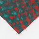 Red crisscrossing scratches over charred cyan fleece blanket