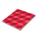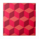 The design features an interlocking pattern of red cubes. It could be seen as reminiscent of the art of M.C. Escher, but it simply uses basic geometric forms to achieve a beautiful effect. It looks like an endless red staircase.