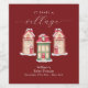 Cute adorable modern elegant whimsical winter baby shower theme, Holiday baby shower theme, design feature red and white watercolor whimsical Gingerbread house village, snowflake, and script calligraphy typography "It Takes A Village" you can customize your own unique text and color.