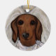 I was looking for an ornament for our dog, who we had to put down in April. I found it on Zazzle! Not too big, and her photo is very clear. I would recommend it if you are looking to remember an old pet this time of year. Not quite centered..