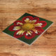Ceramic tile that features the photo image of a colourful, red Collarette Dahlia flower with white, inner petals and large, yellow centre on a dark green background. A lovely, floral design! Select your tile size. Makes a great kitchen trivet!