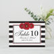 This lovely design features clusters of red Gerbera daisies and bold horizontal stripes in black and white. The inset has a decorative border surrounding the inner text in stylish fashion. This personalised Table Number Card is part of the wedding collection, "Red Daisies and Stripes Wedding" and includes the Wedding Reception Table Number, names of the happy couple, and their wedding date. Personalise with your name and information by selecting "Customise It" and adding your info using the template on the right side of the screen. Choose from a variety of wedding day planning needs to prepare for your special day.