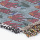 A quality printed throw has its advantages. This is a much finer weave throw than its loopier cousins, and though lighter, it is worth the investment for custom room accessorizing. The back is much prettier than the typical brown, and the fringe on the long sides very vivid, the selvage nicely done. Before photographing, I washed the throw in cold water, delicate, with a thicker woven throw the same size. On tumble dry low, this throw was dry in half the time as the other. This is a very practical quality if you use throws for furniture covers or to wrap up in frequently. The sleekness of the fabric makes it a great layer for accenting or protecting without the feeling of sitting on too much stuff. Perfect for napping or when you feel a light chill coming on. The color printing is beautiful and on this fabric, matched the design and color of my Photoshop image. This is an advantage for blending room fabrics and colors. The fringe on the short sides prints the colors from the design image and therefore varies from the side fringe. I streaked a white fractal line through the plaid pattern to give the illusion of weaving. This printed as crisp as an illusory thread, and put some white in the short side fringe, showing another advantage of print vs loomed- for artistic purposes, line lines, detail, and color integrity can be planned and preserved. My loomed throws have color limitations and more of a needlepoint texture. Print throws reproduce an exact image. The throw felt a little stiff straight out of the package, but this went away in the first delicate wash. Of course I searched the wash water for ink or bleeding and there was none.