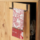 Red Damask And Flowers Tea Towel