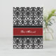 Custom Bat Mitzvah party invitations in elegant red, black and white classic floral damask pattern. Add your name and party details for a unique and stylish Bat Mitzvah party invitation.