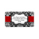 A posh and fashionable address label. Stylish and elegant black and white damask background design with scarlet crimson red accents. All Designs Copyright © 2012 www.zazzle.com/ChristmasCardShop*