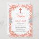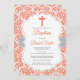 Red Damask Cross Baptism Invitation
