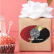 PERSONALIZE this stylish feminine modern contemporary black and gold ribbon and rhinestone crystal jewel graphic on a girly romantic deep red vintage damask pattern and modern gold swirl ribbon , with your own text, name or monogram, initials.