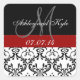 Damask Monogram Save the Date Stickers. Customise with your bride and groom names and wedding date. Great for wedding favours and cake box labels. Change the colours and monogram too. Choose form six different sticker shapes. Elke Clarke ©2011