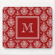 Red Damask Pattern 1 with Monogram Mouse Pad