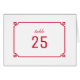 Simple and minimalist Deco Chic Table Number Card with a modern red art deco ornamental border. This classic and elegant table card is easy to customise with your wedding details. Find more personalisation options by clicking Customise.