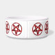 Red, inverted, textured pentagram in circle, on white background. Occult symbol. 666