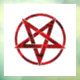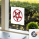 Red, inverted, textured pentagram in circle, on white background. Occult symbol. 666