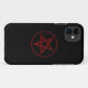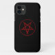 Red, inverted, textured pentagram in circle, on black background. Occult symbol. 666