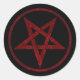 Red, inverted, textured pentagram in circle, on black background. Occult symbol. 666
