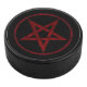 Red, inverted, textured pentagram in circle, on black background. Occult symbol. 666
