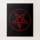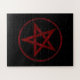 Red, inverted, textured pentagram in circle, on black background. Occult symbol. 666
