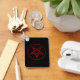 Red, inverted, textured pentagram in circle, on black background. Occult symbol. 666