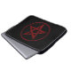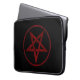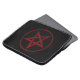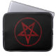 Red, inverted, textured pentagram in circle, on black background. Occult symbol. 666