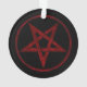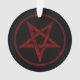 Red, inverted, textured pentagram in circle, on black background. Occult symbol. 666
