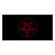 Red, inverted, textured pentagram in circle, on black background. Occult symbol. 666