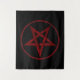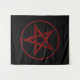 Red, inverted, textured pentagram in circle, on black background. Occult symbol. 666