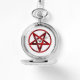 Red, inverted, textured pentagram in circle, on white background. Occult symbol. 666