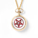 Red, inverted, textured pentagram in circle, on white background. Occult symbol. 666