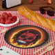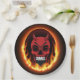 Red Devil Skull Skeleton Paper plates with fire and flames background.