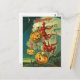 Red Devils riding on Halloween pumpkins' smoke Postcard