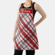 This design features a beautiful red tartan diagonal plaid in red, white and grey. Add your name or custom text to make this apron uniquely yours.