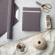 This wrapping paper features a stylised flower bouquet in a diamond shape with colours like fuchsia, burgundy, lavender and white.