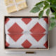 A bold, geometric pattern of large and small red diamonds on a white background. The white forms a lattice which separates the diamond shapes.