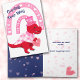 Perfect for kids and adults, the front of this Valentine's Day card has an image of a comical red dinosaur dressed in a top hat and jacket. He carries a pink heart, and a pink heart rainbow is behind him. The text says "Coming Your Way", with the sentiment continued on the inside. All the text may be easily customised to anything else you'd prefer.