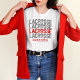Bold letters spell out the word "LACROSSE" with the "O" replaced by a basket. The slightly distressed design makes a great personalised gift for a player, coach, team or fan. Available in red, orange, yellow, purple, green, blue, grey, black, forest green, navy, maroon, burnt orange, gold and powder blue. Matching products available.