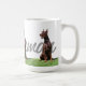 Red Doberman Pinschers with breed name graphic Mug