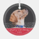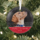 Custom Red Dog Pet Photo Christmas Holiday Keepsake Glass Ornament. The text reads Merry Christmas. Change the photo with your pet - dog or cat or another animal photo for great holiday keepsake ornament or unique gift. Create your own pet Christmas ornament. Also great with your family photo.