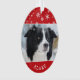 Cute Red Dog Photo and Name Snowflake Pattern Ornament. You can personalise it with your pet`s photo and the name. Insert your favourite photo. Beautiful white snowflakes overlay the photo. You can use this custom ornament for any pet. The ornament is in red colour. A great keepsake for you or a gift for your family and friends.
