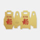 Golden customisable greeting favour bag with red dog papercut (and "drop shadow": black dog ) for Chinese New Year of the Dog 2018. All is customisable with double lettering and image to create drop shadow. Matching greeting postcard, greeting card and gift bags.