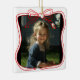 Capture your most cherished memories with this custom square photo ornament featuring a pink frame and festive red bow outline. Perfect for highlighting your favorite photo — whether it’s your child, baby, pet, or a special family holiday moment.