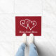 Red door mat with interlocking hearts and initials plus quote. Home sweet home. Make your own custom indoor / outdoor doormat with custom background colour and saying. Add your own welcome message, family name, monogram, surname or funny quote. Cute gift idea for new home / housewarming, wedding venue, store, shop, office etc. Trendy script typography with interlocked love symbol. Romantic theme. Personalizable template. Create your own entry mat / rug for front door / entryway or hall. Customisable home decor / decorations for your cosy house. Cute present for newlyweds couple, bride and groom, husband and wife.
