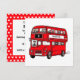 A sweet bright red double decker bus birthday invitation by Helen McCartney Designs. This can be personalized on the front with the name on the banner on the side of the bus, the age on the front blackboard and the party date on the number plate.